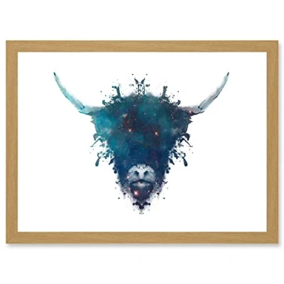 Wee Blue Coo Graphic Ink Splat Highland Cow Scotland A4 Artwork Framed Wall Art Print