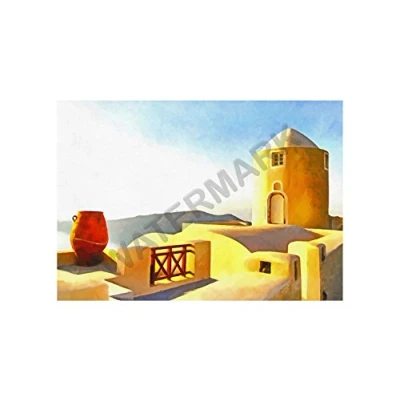 Wee Blue Coo Greek Rooftop Costal Painting Wall Art Print