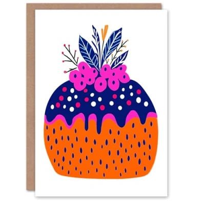 Wee Blue Coo Greeting Card Cake Pudding Orange Pink Vibrant Pop Art Blank For Him Or Her Xmas Christmas