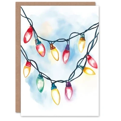 Wee Blue Coo Greeting Card Colourful Fairy String Lights Soft Watercolour Blank For Him Or Her Art Xmas Christmas