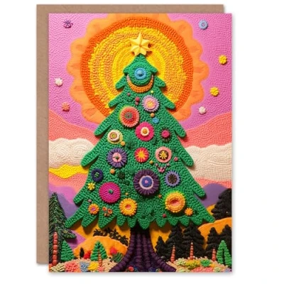 Wee Blue Coo Greeting Card Colourful Forest Sunrise Festive Decorated Tree For Child Kids Xmas Christmas