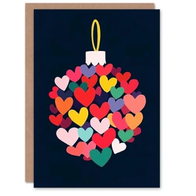 Wee Blue Coo Greeting Card Colourful Love Heart Bauble Ornament Modern Blank For Him Or Her Art Xmas Christmas