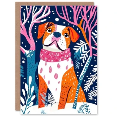 Wee Blue Coo Greeting Card Cute American Bulldog Park Walk Snow Dog Lover For Her Woman Xmas Christmas