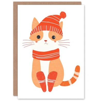 Wee Blue Coo Greeting Card Cute Kitten Winter Hat Modern Orange Cat Lover Blank For Him Or Her Art Xmas Christmas