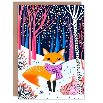 Wee Blue Coo Greeting Card Cute Red Fox Vibrant Colourful Winter Forest Blank For Him Or Her Art Xmas Christmas