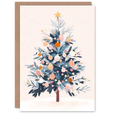 Wee Blue Coo Greeting Card Decorated Tree Pink Orange Baubles Fairy Lights Blank For Him Or Her Art Xmas Christmas