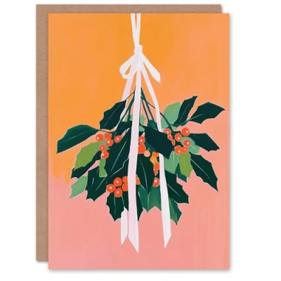 Wee Blue Coo Greeting Card Hanging Holly Sprig Bundle Elegant Modern For Her Woman Xmas Christmas