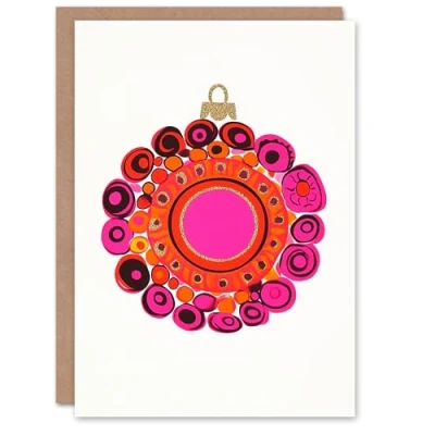 Wee Blue Coo Greeting Card Kandinsky Style Pink Orange Vibrant Bauble Design Blank For Him Or Her Art Xmas Christmas