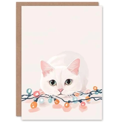 Wee Blue Coo Greeting Card Playful Kitten with Fairy String Lights Cat Lover Blank For Him Or Her Art Xmas Christmas