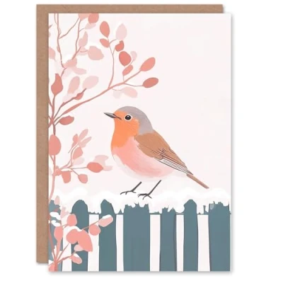 Wee Blue Coo Greeting Card Winter Robin Bird On Garden Fence Watercolour Blank For Him Or Her Art Xmas Christmas