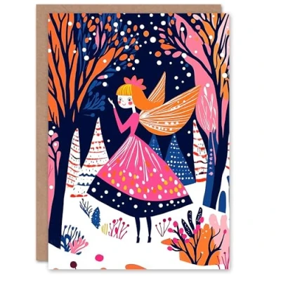 Wee Blue Coo Greeting Card Winter Wonderland Fairy Princess Vibrant Folk Art For Child Kids Xmas Christmas