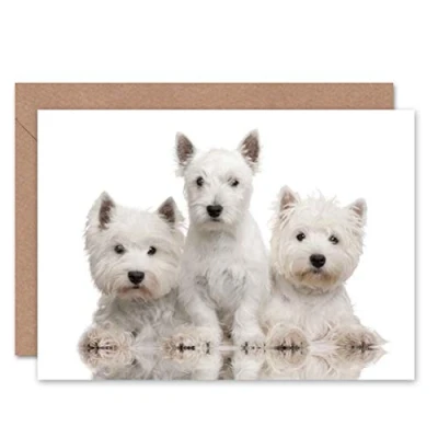 Wee Blue Coo Greeting Cute West Highland Westie Puppy Dogs Gift Sealed Card Plus Envelope Blank inside