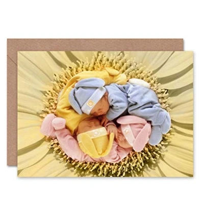 Wee Blue Coo GREETINGS CARD BIRTHDAY GIFT BABIES ASLEEP MIDDLE FLOWER PETALS