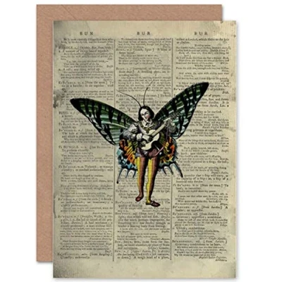 Wee Blue Coo GREETINGS CARD BIRTHDAY GIFT UPCYCLE BUTTERFLY FAIRY LUTE