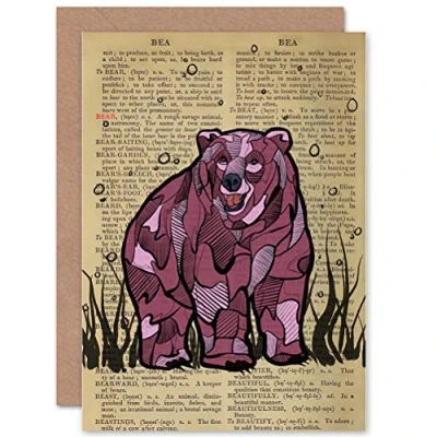 Wee Blue Coo GREETINGS CARD BIRTHDAY GIFT UPCYCLE DICTIONARY BEAR ANIMAL DRAWING