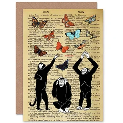 Wee Blue Coo GREETINGS CARD BIRTHDAY GIFT UPCYCLE DICTIONAY MONKEYS BUTTERFLIES