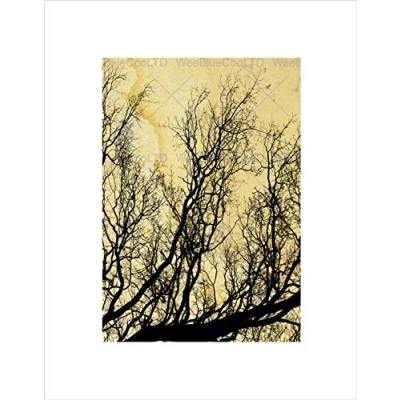 Wee Blue Coo Grunge Tree Silhouette Beige Black Art Picture Wall Print