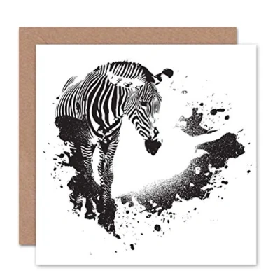 Wee Blue Coo GRUNGE ZEBRA BLACK WHITE ANIMAL BLANK GREETINGS BIRTHDAY CARD ART