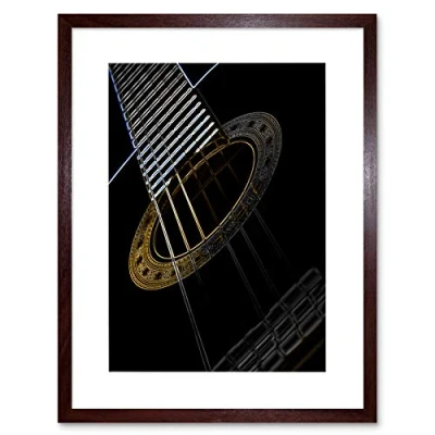 Wee Blue Coo Guitar Neon Strings Glow Inverse Instrument Music Framed Wall Art Print