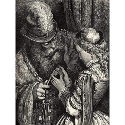 Wee Blue Coo Gustave Dore Bluebeard 1862 Old Master Painting Art Print Poster Wall Decor 12X16 Inch