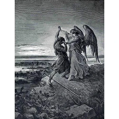 Wee Blue Coo Gustave Dore Jacob Wrestling With Angel 1866 Old Painting Art Print Poster Wall Decor 12X16 Inch