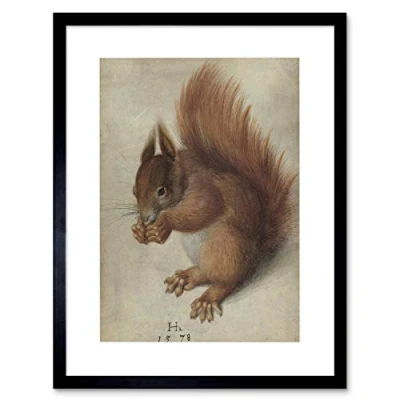 Wee Blue Coo HANS HOFFMANN GERMAN RED SQUIRREL BLACK FRAME FRAMED ART PRINT PICTURE B12X5242
