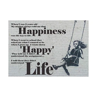 Wee Blue Coo Happiness Happy Banksy Girl Swinging Quote Picture Wall Art Print