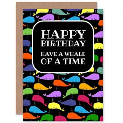 Wee Blue Coo Happy Birthday Whale of A Time Blank Greeting Card