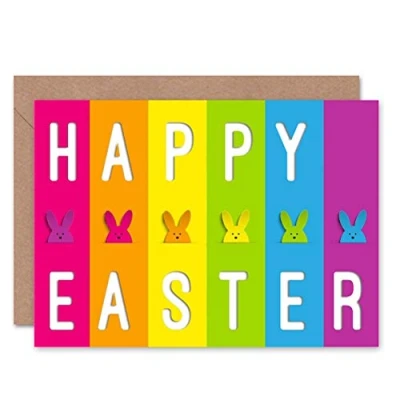 Wee Blue Coo HAPPY EASTER BUNNIES MULTI COLOUR STRIPES BLANK GREETINGS CARD