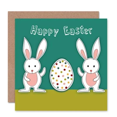 Wee Blue Coo HAPPY EASTER BUNNIES SPOT EGG BIRTHDAY BLANK GREETINGS CARD