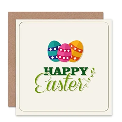 Wee Blue Coo HAPPY EASTER PAINTED EGGS BORDER BLANK GREETINGS CARD ART