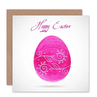 Wee Blue Coo HAPPY EASTER PAINTED PINK EGG BLANK GREETINGS CARD ART