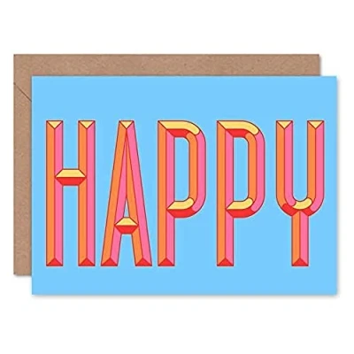 Wee Blue Coo Happy Word Art Bright Greeting Card With Envelope Inside Premium Quality