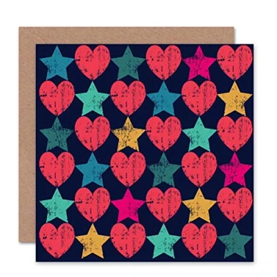Wee Blue Coo HEARTS STARS MULTI COLOURED VALENTINES BLANK GREETINGS BIRTHDAY CARD