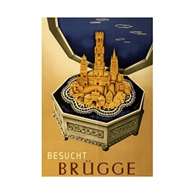 Wee Blue Coo Historic Belgium Visit Brugges Castle Music Box Picture Wall Art Print