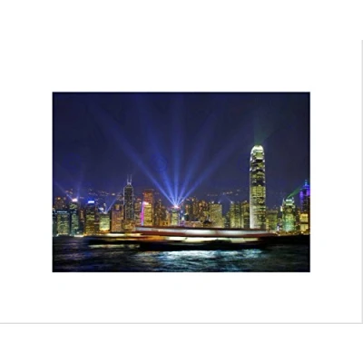 Wee Blue Coo Hong Kong Harbour Lights Cityscape Art Picture Wall Print