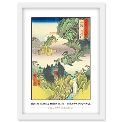 Wee Blue Coo Horai Temple Mountains Mikawa Province Utagawa Hiroshige Japanese Woodblock Classic Collection Artwork Framed Wall Art Print A4