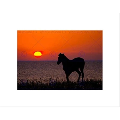 Wee Blue Coo Horse Pony Silhouette Sunset Art Wall Print