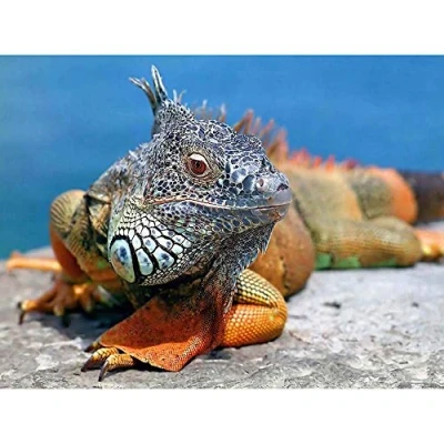 Wee Blue Coo Iguana Lizard Reptile Sitting Art Print Poster Wall Decor 12X16 Inch