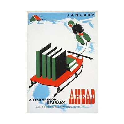 Wee Blue Coo Illinois Library Reading Book Snow Sledge Ad Picture Wall Art Print