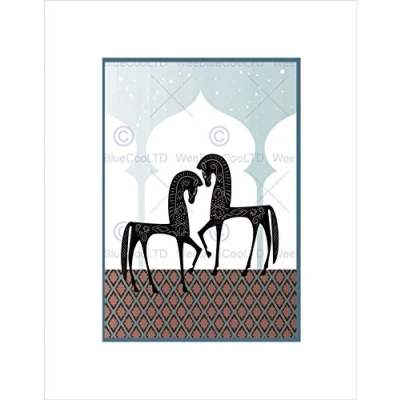 Wee Blue Coo Illustration Decorative Arabian Horses Arch Stars Wall Art Print