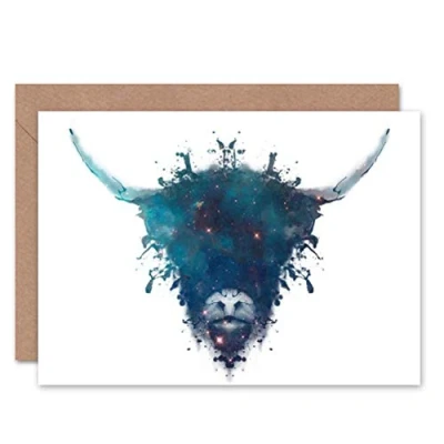 Wee Blue Coo Ink Splat Highland Cow Birthday Art Gift Sealed Greeting Card Plus Envelope Blank inside