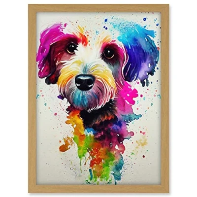 Wee Blue Coo Ink Splatter Cockapoo Dog Watercolour Painting Artwork Framed A3 Wall Art Print