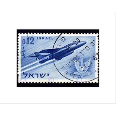 Wee Blue Coo Israeli Aircraft Fighter Vintage Postage Stamp Wall Art Print