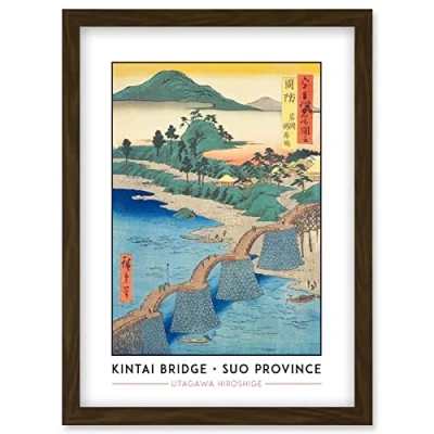 Wee Blue Coo Iwakuni, Kintai Bridge Suo Province Utagawa Hiroshige Japanese Woodblock Classic Collection Artwork Framed Wall Art Print A4