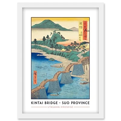 Wee Blue Coo Iwakuni, Kintai Bridge Suo Province Utagawa Hiroshige Japanese Woodblock Classic Collection Artwork Framed Wall Art Print A4