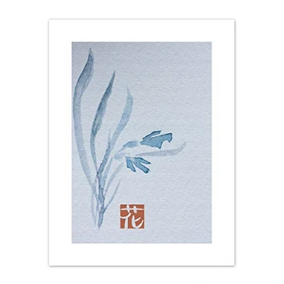 Wee Blue Coo Japanese Watercolour Flower Texture Art Print Canvas Premium Wall Decor Poster