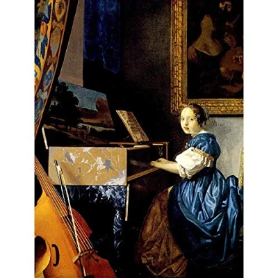 Wee Blue Coo Johannes Vermeer Dame On Spinet Old Master Painting Art Print Poster Wall Decor 12X16 Inch