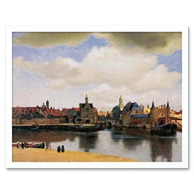 Wee Blue Coo Johannes Vermeer View Of Delft Old Master Painting Art Print Framed Poster Wall Decor 12X16 Inch