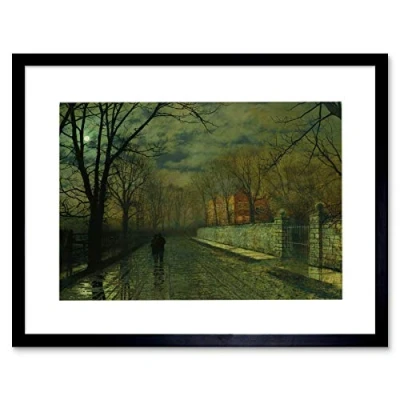 Wee Blue Coo John Atkinson Grimshaw Figures Moonlit Lane Rain Framed Print Picture F12X464